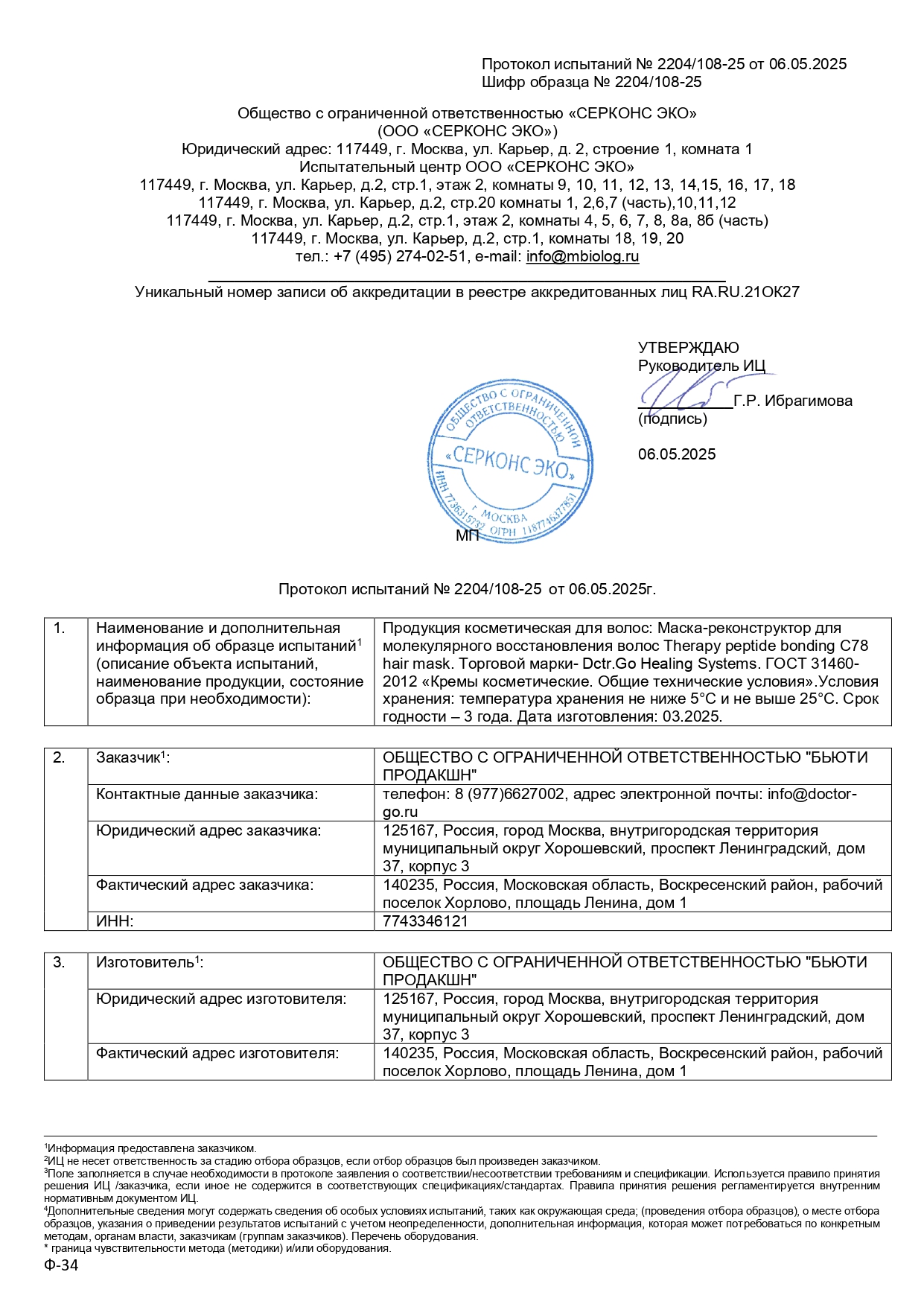 Срок годности маски для восстановления волос: 3 года с даты изготовления.